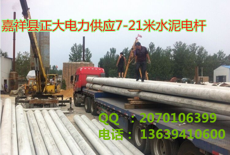 山東嘉祥正大電力對外供應12米水泥電線桿,價格:預應力48mm 12米390元35-19cm