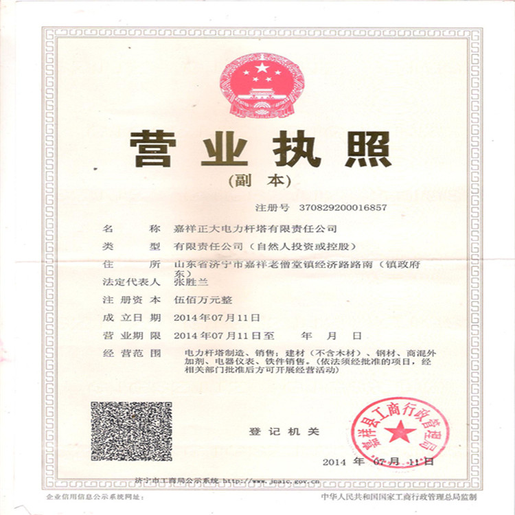 嘉祥正大電力桿塔有限公司