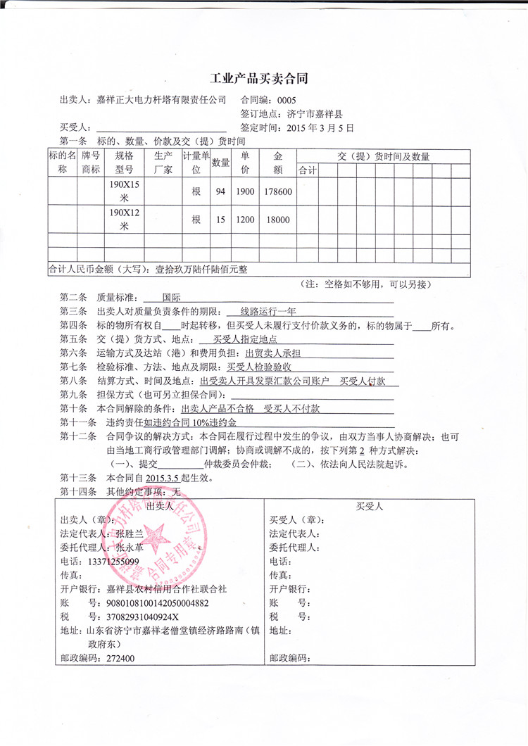 嘉祥正大電力桿塔有限責任公司是生產各種環形水泥混凝土電桿、水泥三盤。公司成立于2006年,地處是孔孟之鄉—山東濟寧,環境優美,交通便利,現擁有資產3500萬元(其中固定資產2000萬元),占地40000平方米(其中建筑面積8000平方米),現有職工185人,其中技術人員19人,大中專以上學歷15人。自零六年成立以來,以雄厚的實力、精良的設備、先進的技術、優質的產品在短短幾年的時間內,躍居山東省水泥制品行業的先進行列。先后被濟寧市政府命名為“重合同守信用單位”、“文明單位標兵”;被濟寧市勞動局評為“安全規范化單位”;連續三年被濟寧市質量技術監督局授予“產品質量信得過單位”,阿里巴巴誠信通第三方認證企業,是干凈純潔的水泥電桿網絡銷售平臺!